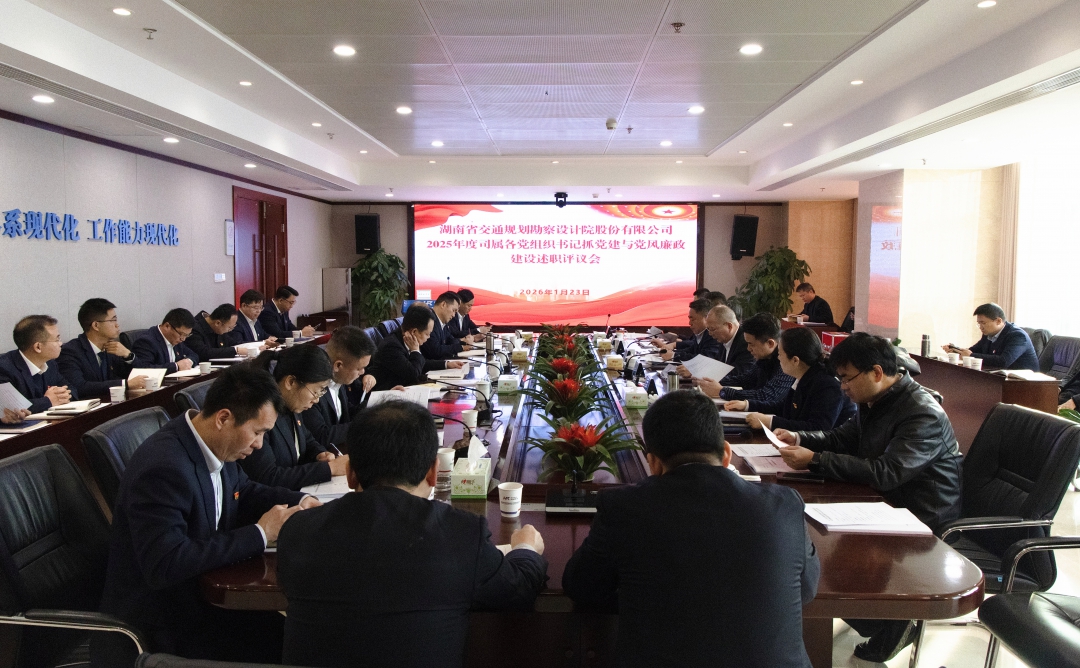 1月23日,湖南省交通規(guī)劃勘察設(shè)計(jì)院股份有限公司召開(kāi)2025年度黨組織書(shū)記抓黨建與黨風(fēng)廉政建設(shè)述職評(píng)議會(huì)。公司黨委書(shū)記、董事長(zhǎng)向建軍出席并作點(diǎn)評(píng)講話,黨委專職副書(shū)記、職工董事、工會(huì)主席張重祿主持,公司黨委班子成員和高級(jí)管理人員出席會(huì)議。 會(huì)議設(shè)置“展、述、評(píng)、測(cè)...